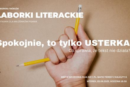 5August Co sprawia, że tekst nie działa? 18:00 - 20:00 - MBP Filia nr 7, plac Matki Teresy z Kalkuty 8, 71-622 Szczecin Każdy tekst da się uratować.